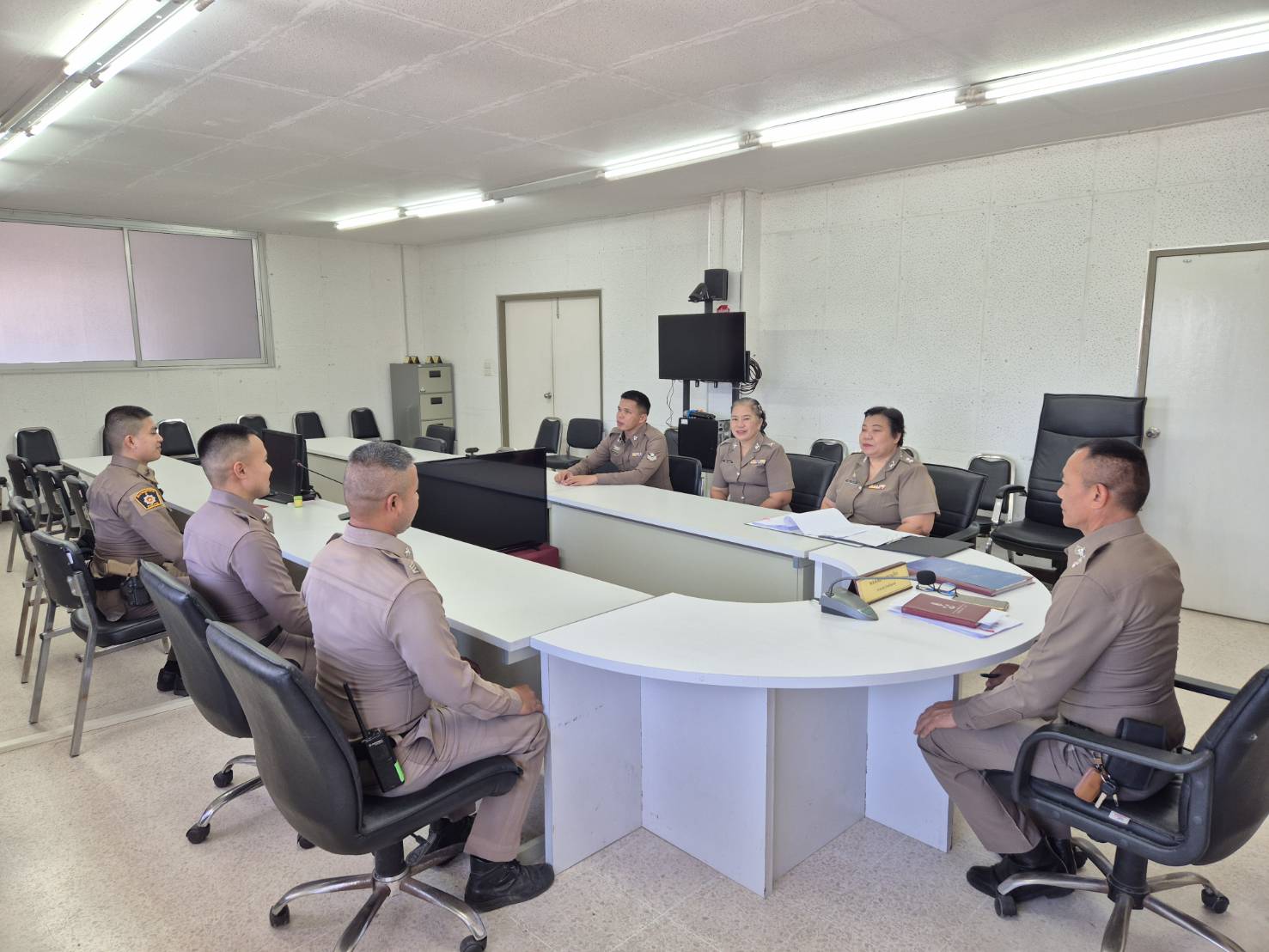 พ.ต.อ.เวชบุตร ชมบุญ ผกก.สภ.บำเหน็จณรงค์ประชุมเจ้าหน้าที่ฝ่ายธุรการผู้มีหน้าที่จัดการทรัพย์สินของทางราชการ ของบริจาค และของกลาง เพื่อทบทวนกระบวนการจัการจัดเก็บของกลางและตรวจสอบขั้นตอนการทำลายของกลางให้เป็นไปตามขั้นตอนของระเบียบที่เกี่ยวข้อง