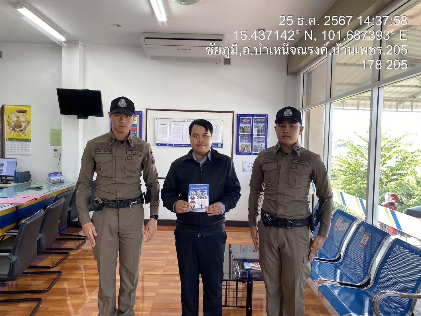 โครงการฝากบ้านไว้กับตำรวจช่วงเทศกาลปีใหม่ 5 มกราคม 2568 โดย นิรวัชร์ ชำนาญศรี / ผลการปฏิบัติงานแต่ละสายงาน,งานป้องกันปราบปราม,ผลการปฏิบัติงานแต่ละสายงาน,งานป้องกันปราบปราม,ปป.ม.ค.68,ผลการปฏิบัติงานแต่ละสายงาน สถานีตำรวจภูธรบำเหน็จณรงค์ ดำเนินการตามโครงการฝากบ้านไว้กับตำรวจ ในช่วงเทศกาลปีใหม่โดยได้ออกดำเนินการติดตั้ง QR Code จุดตรวจ รับฝากบ้านตามที่ผู้ฝากได้แจ้งเข้ามาทางระบบ Police 4.0 พร้อมทั้งได้ประชาสัมพันธ์ให้ประชาชนเก็บดูแลทรัพย์สินในช่วงวันหยุด FacebookFacebookXXLINELine