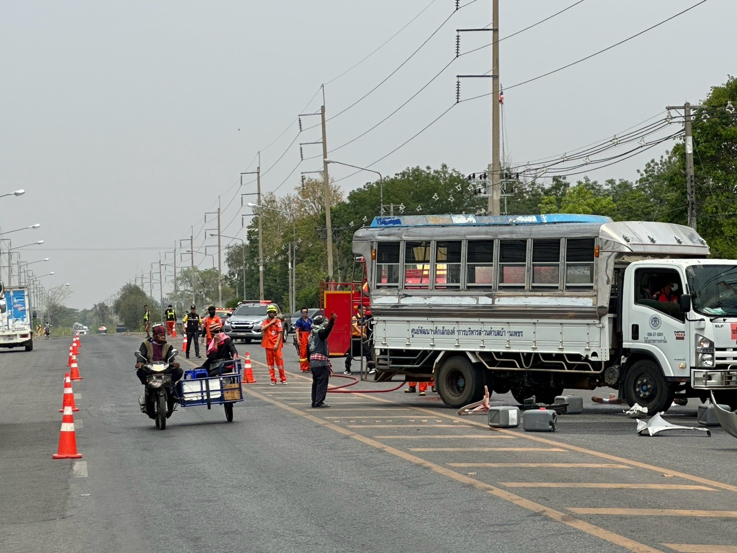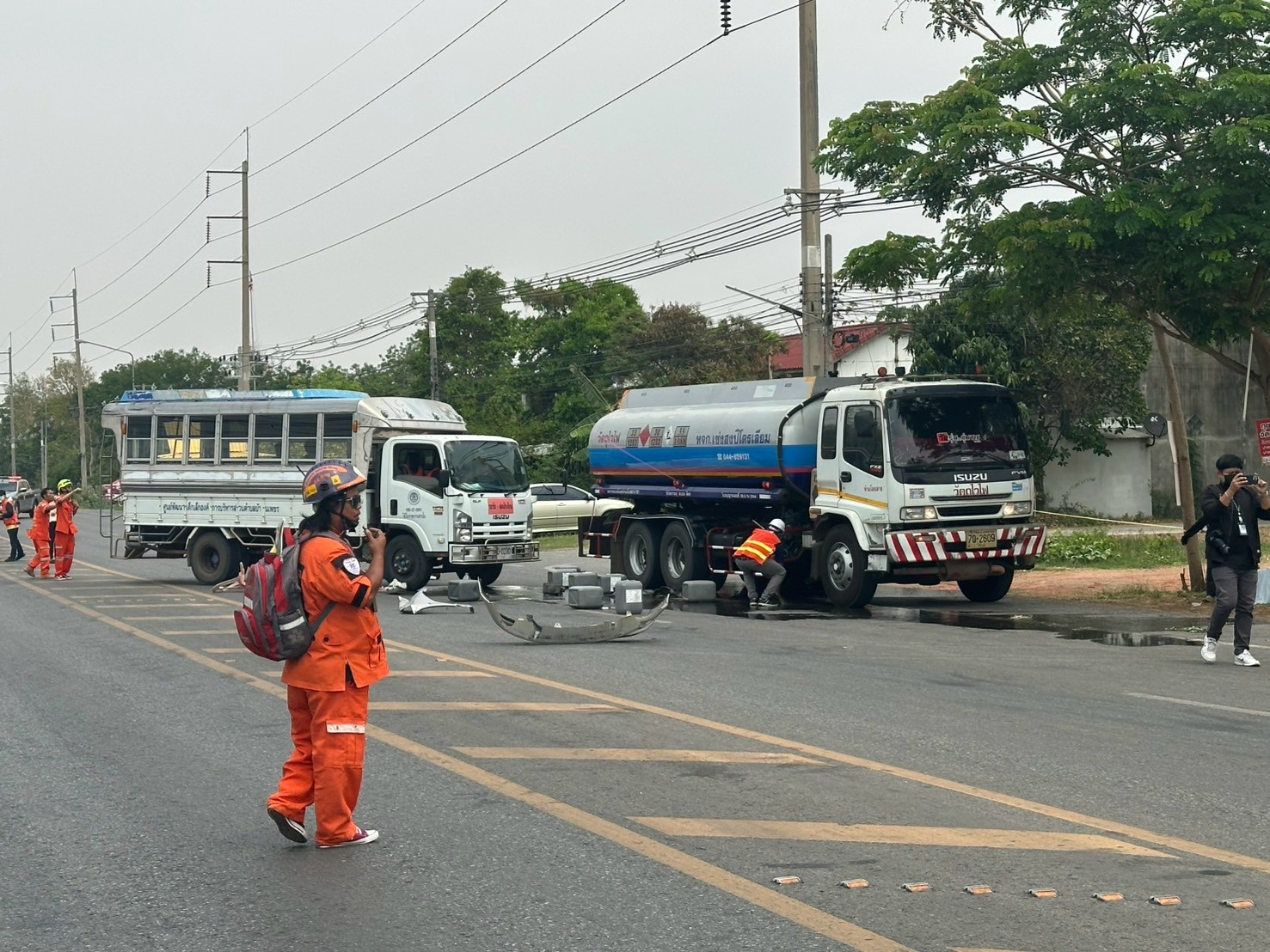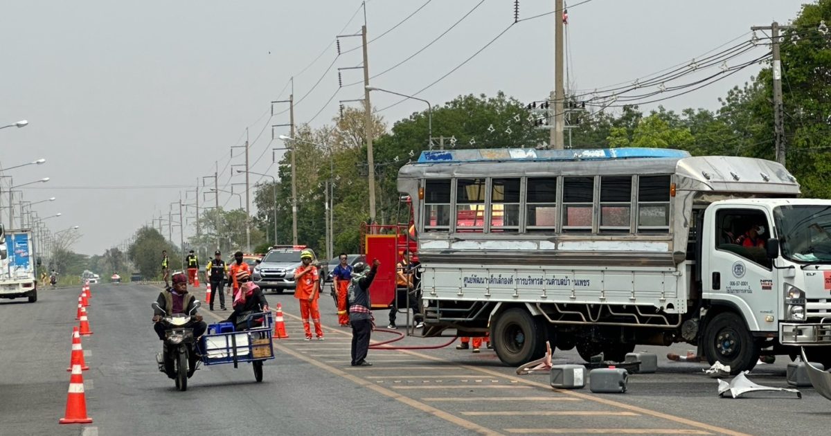 – สถานการณ์ : เหตุรถบรรทุกน้ำมันชนกับรถโดยสารนักเรียน มีผู้บาดเจ็บ และมีเพลิงไหม้