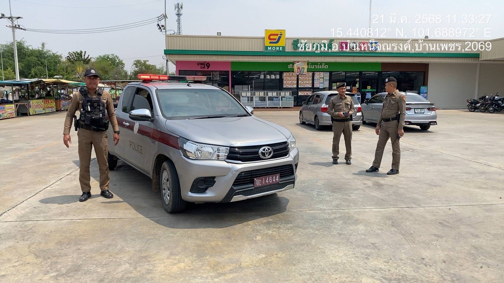 ทดสอบการเข้าระงับเหตุของสายตรวจ 21 มีนาคม 2568 โดย นิรวัชร์ ชำนาญศรี / ผลการปฏิบัติงานแต่ละสายงาน,งานป้องกันปราบปราม,ผลการปฏิบัติงานแต่ละสายงาน,งานป้องกันปราบปราม,ปป.มี.ค.68,ผลการปฏิบัติงานแต่ละสายงาน วันที่ 21 มี.ค.68 เวลา 11.30 น.พ.ต.ท.ประพัฒ พุฒนิลรอง ผกก.ป.สภ.บำเหน็จณรงค์พ.ต.ท.ประสิทธิ์ พละสุข สวป.สภ.บำเหน็จณรงค์ ได้ทดสอบการเข้าจุดที่เกิดเหตุของเจ้าหน้าที่ตำรวจสายตรวจสถานที่ทดสอบ : ร้านสะดวกซื้อ CJ more ม.21 ต.บ้านเพชร อ.บำเหน็จณรงค์ จ.ชัยภูมิ (ในเขตเทศบาลตำบลบ้านเพชร)สถานการณ์ : บุคคลเมาก่อความวุ่นวายผลการทดสอบ : ระยะเวลาตั้งแต่ที่ศูนย์วิทยุสื่อสารแจ้งเหตุ ให้สายตรวจทราบ สายตรวจ จยย.มาถึงที่เกิดเหตุ ใช้เวลา 3.51 นาที FacebookFacebookXXLINELine